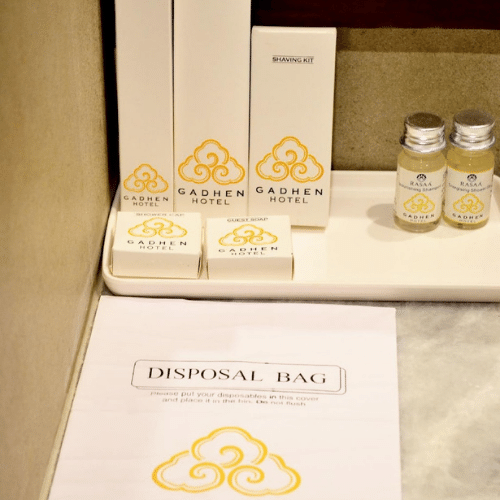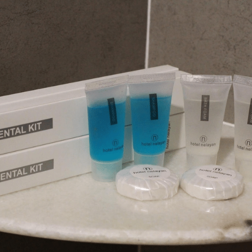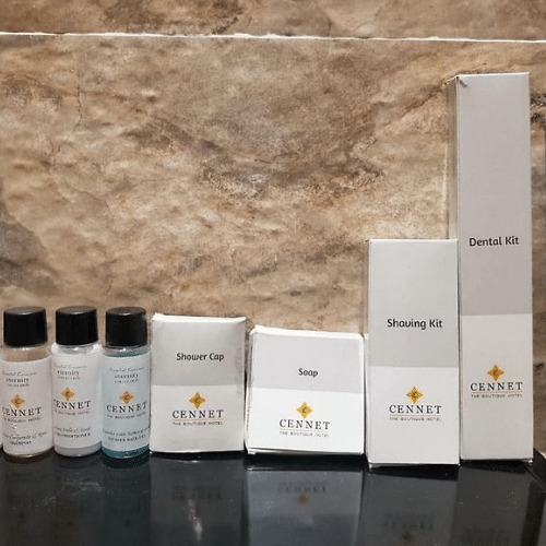 Box amenities with 30 m.l bottles with golden / silver cap